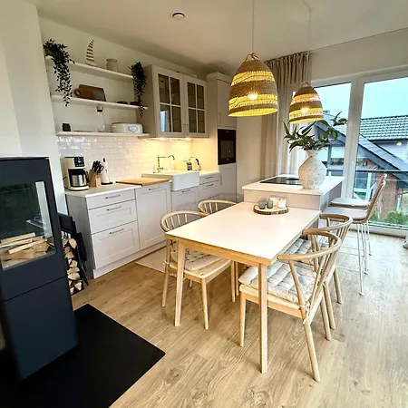 Pierside - Pier 4 Lägenhet Haffkrug, som ligger inom 3 km från Förbannelsen från Novgorod, välkomnar gäster med utsikt över havet och tillgång till en spasalong. Ungefär 10 minuters bilresa från den 100 m² stora lägenheten hittar du Hansa-Park.